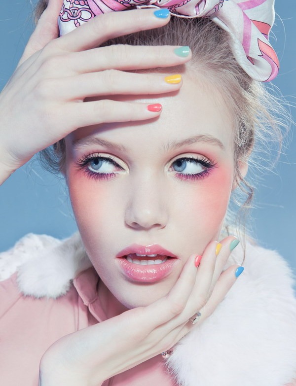 A fresh look of softened shades on face and nails create the perfect girly summer look for younger clients.