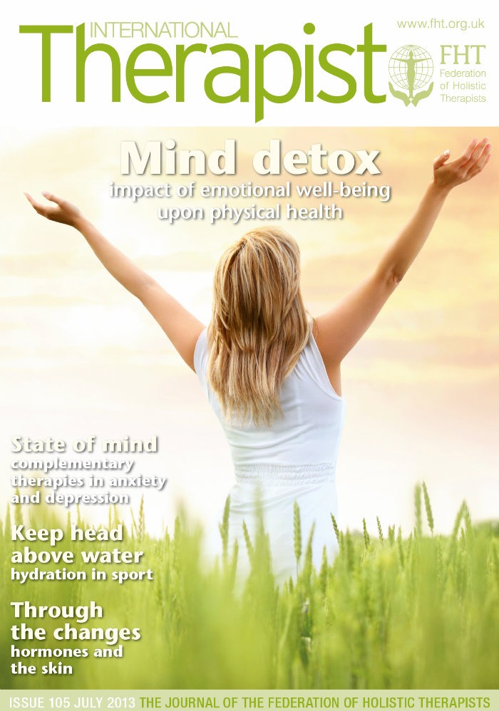 The July issue of International Therapist is on its way to members. This issue includes articles by Dr Karen Pilkington, who looks at the use of complementary therapies in anxiety and depression, and Professor Timothy Noakes, who discusses achieving a balance between drinking sufficient amounts during exercise, without overdrinking, plus a look at abhyanga massage, the impact of steroid hormones upon the skin, gastric band hypnotherapy, business advice on developing a brand, the five-step mind detox method, and FHT members experiences’ of working with military personnel and veterans. There is also a chance to win a selection of aromatherapy complexes and body wraps, worth £200!