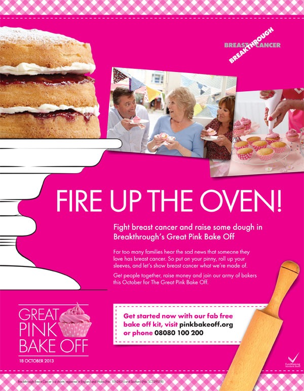 This October, during Breast Cancer Awareness Month, we’re asking you to put your pinny on, roll up your sleeves and show breast cancer what you’re made of. On 18 October an army of bakers will hold their own Great Pink Bake Off in aid of Breakthrough Breast Cancer – why not join in?