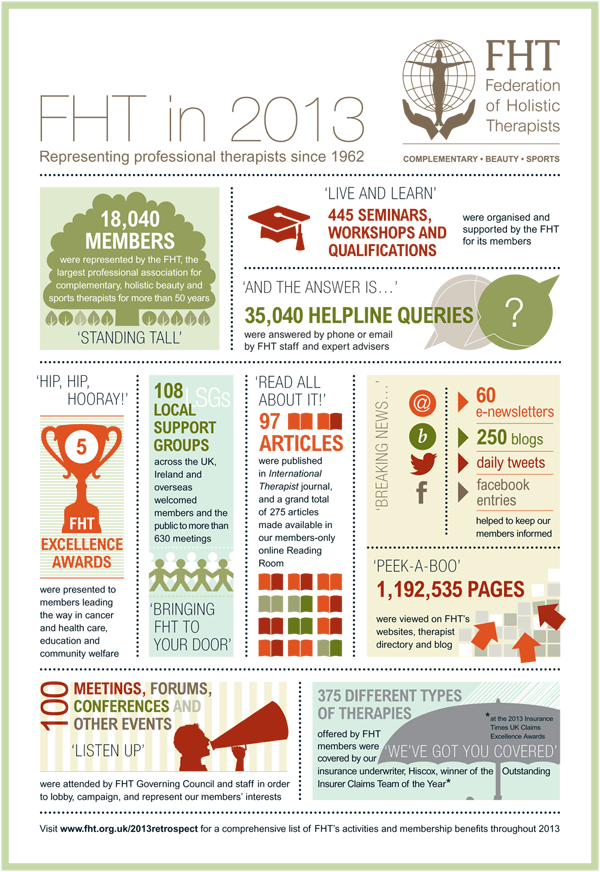 Look out for information in your next issue of International Therapist about the many things we have planned for our members in 2014. We’d also like to take this opportunity to highlight some of our activities and achievements in 2013, so that you can see how your professional association has been representing you.