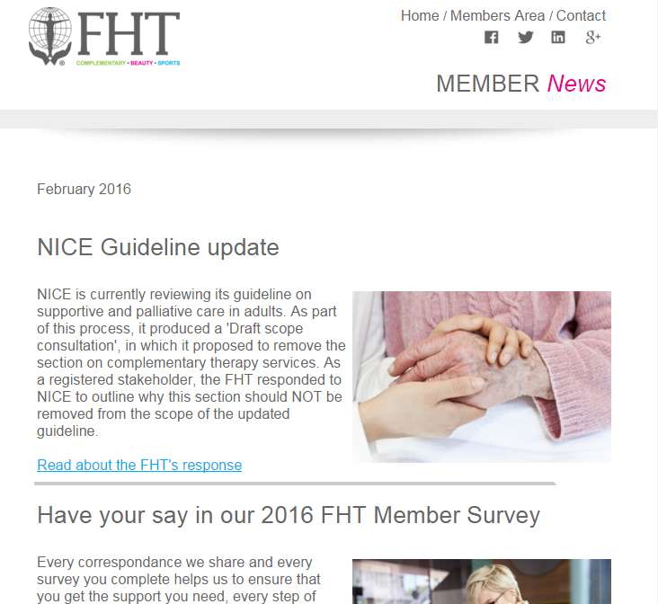 The February issue of FHT News is on its way to members. In our monthly e-newsletter, we update you about your membership and what’s happening in the therapy world. This month, updates include: