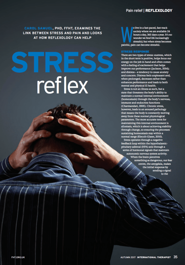 In an article contributed to International Therapist Autumn 2017, Dr Carol Samuel, looks at how reflexology can support clients living with stress and pain.