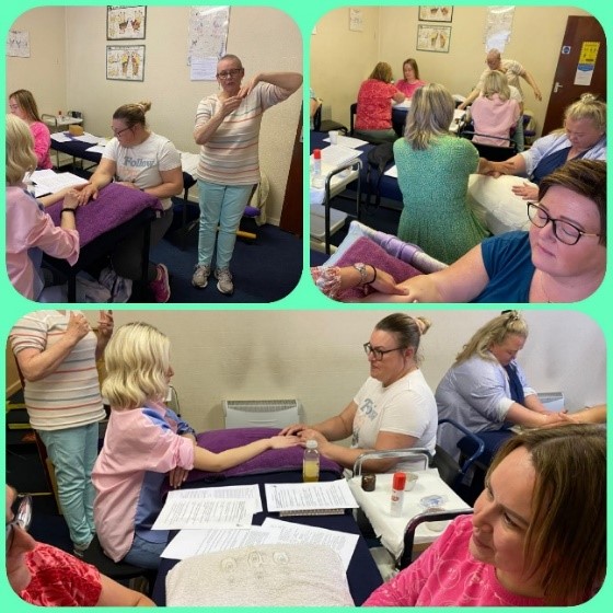 The evening began with Rosie sharing a little of her background then we delved into the essential oils, helichrysum, basil, bergamot, frankincense, and tea tree learning not only their properties and uses in aromatherapy, but any recent research – for instance a study in 2015 found that the use of boswellia based cream was well tolerated by breast cancer patients receiving radiotherapy, reducing the use of corticosteroids and reducing the grade of erythema (patchy redness of skin) & superficial skin symptoms. (Togni et al 2015; International Therapist, 2019)